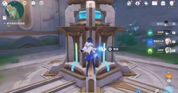 7、上来后来到西北方向的这个装置进行放流,完成解密。