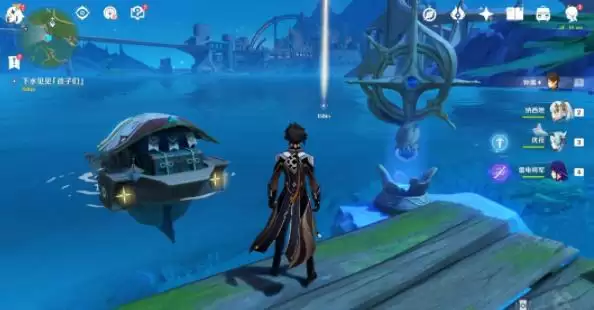 4、随后我们跟随任务的指引,开启浪船锚点下水去寻找孩子们。