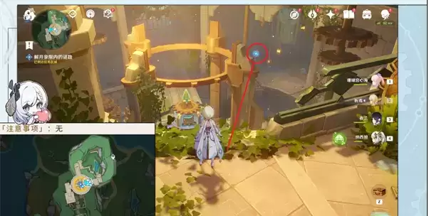 3.再吸收章鱼的力量,之后旋转发射器,对准右边的晶体发射光束,使其对准升降柱。再来到南边的升降柱,对准右边的晶体发射光束,将它升到2格(出现较长的光线即可)。