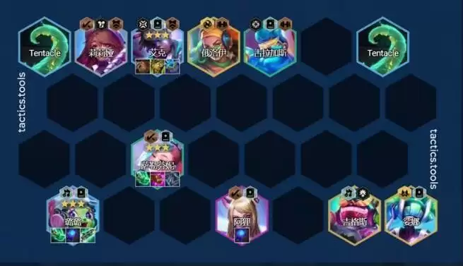 海克斯推荐以下这些,如果开局双经济的话,海克斯就都得三,否则坦度会不够。