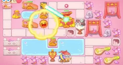 6、右下角建立蝴蝶结,把剩余障碍物清理。