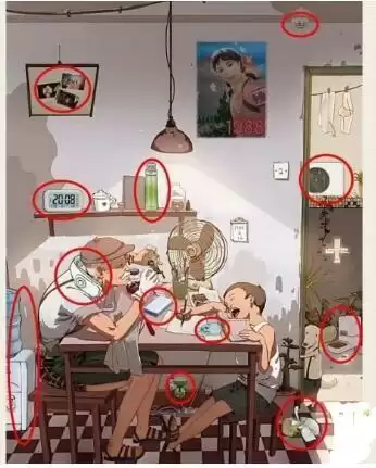 汉字六六六是一款非常经典的答题解谜闯关小游戏,游戏关卡1988午后时光怎么过?图中是八十年代的场景,祖孙两个正在进行午休,玩家需要找出12处不合理的地方 下面是小编给大家带来的《汉字六六六》1988午后时光通关攻略,还没有过关的小伙伴来看看吧,希望对大家有所帮助。