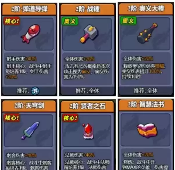 奥义两件套必备,其为本次攻略核心装备;射手、刺客与法师核心装备则为主力输出增加战力,保证伤害输出量(三核优先保证射手与刺客核心);智慧法书则能够使满级英雄伤害更上一层楼