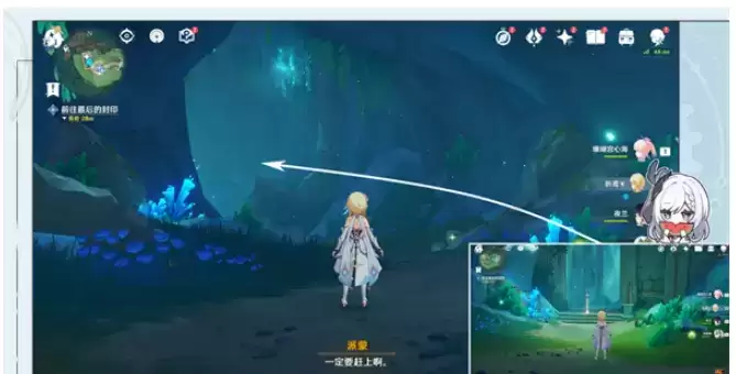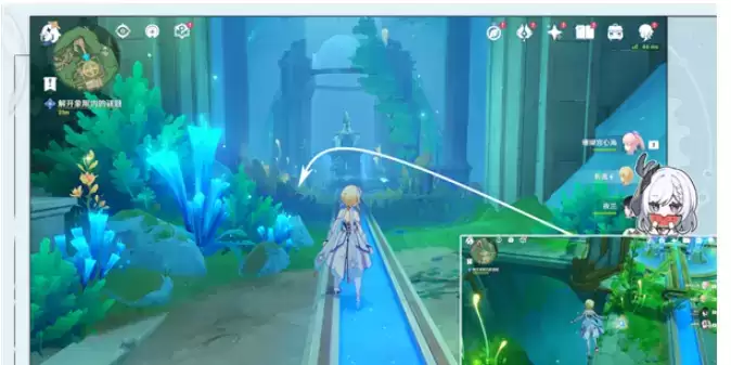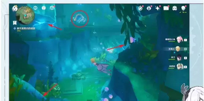 1.跟随指引,进入水中的遗迹。