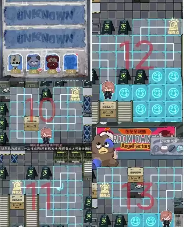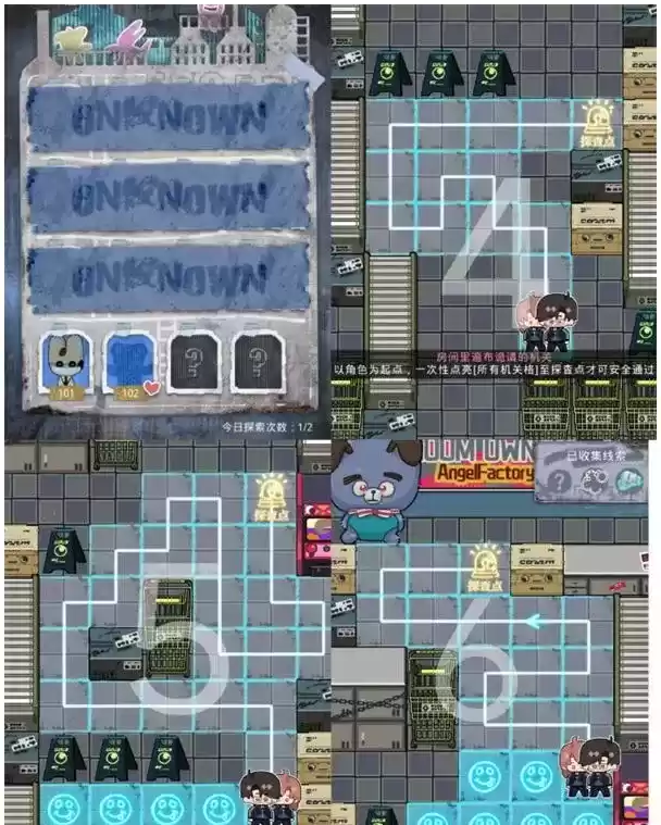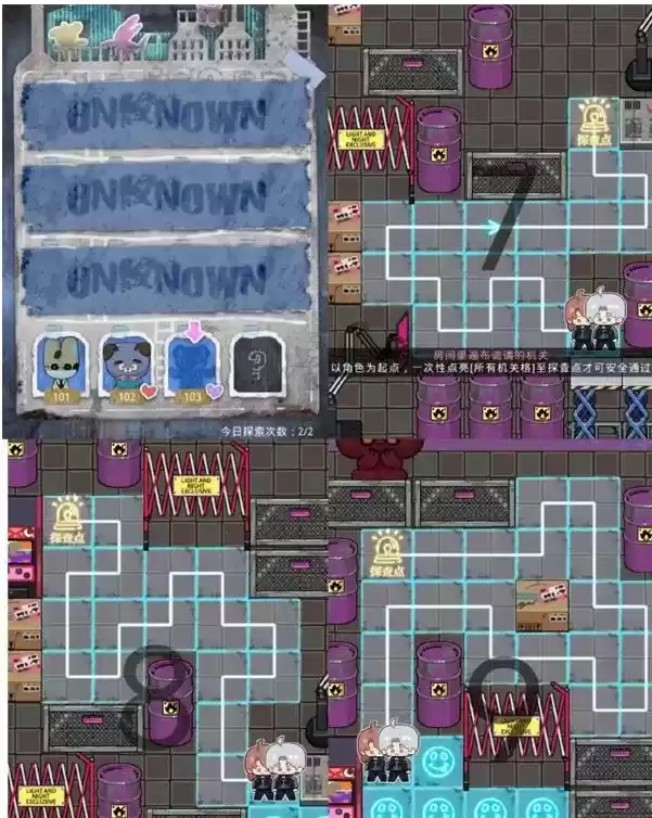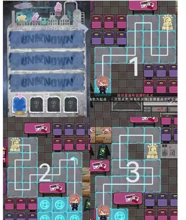 2.进入房间后,通过“一笔画”连接起点与探查点进行探索。