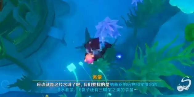 2、然后到海底拾取6个发光点,具体的位置就是下图中的红圈中。