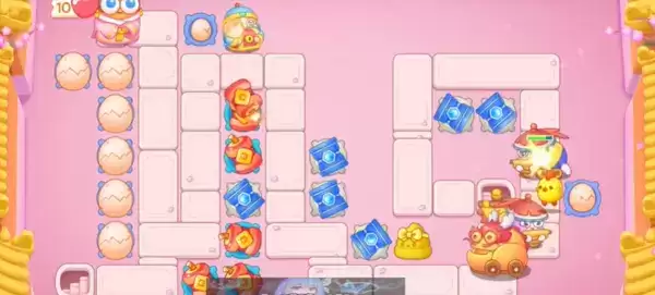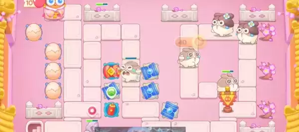 3、在地图中央和左侧萝卜周围补充鸡蛋、冰桶和爆竹,进一步提升火力。