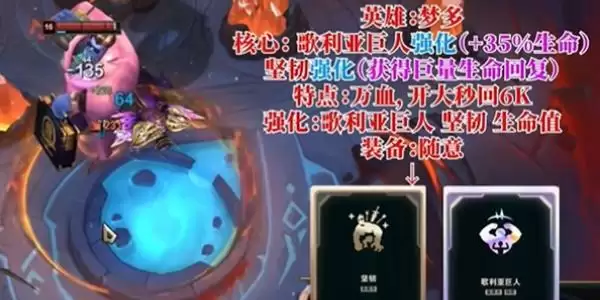 核心强化也是格利亚巨人,梦多的技能都是围绕着生命值设计的。