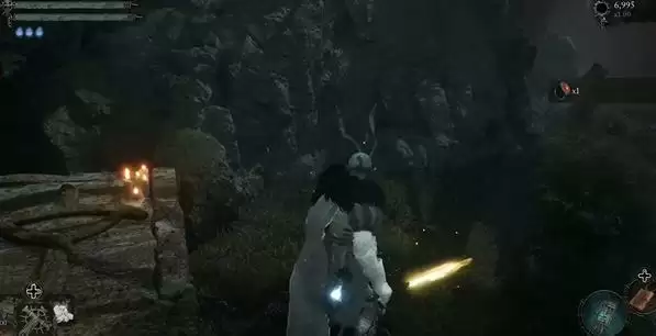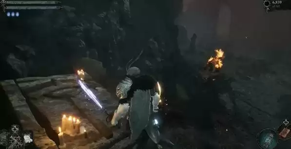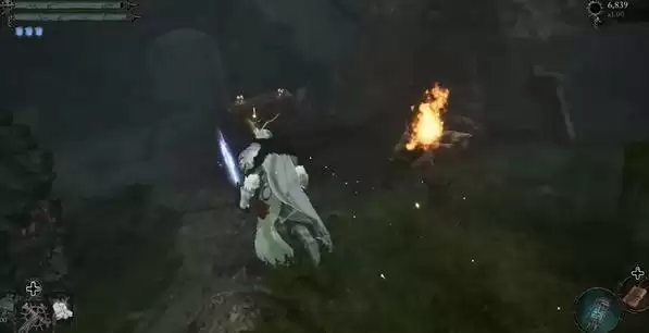 3、门里的桌子旁有一个黄色光点,捡取后就能获取夜火戒指。