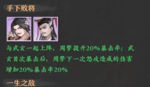 3、周擎与武玄构成两个羁绊提升两者的暴击率和怒攻伤害。