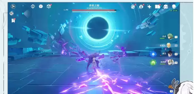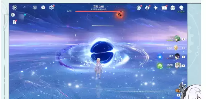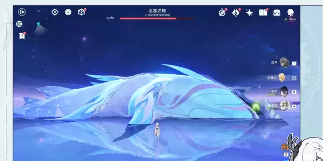 1、进入吞星巨鲸BOSS战后,使用普攻打BOSS,将敌意值打满(注意,BOSS血量低于1/5就不会吞人了,所以尽量别用技能)