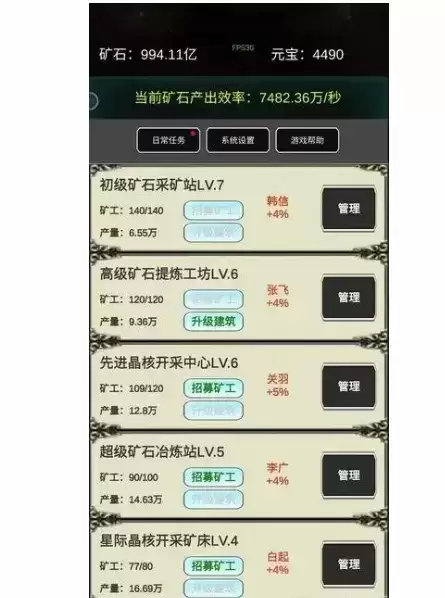 1、进入游戏先升级前五个矿,产生产量上来可以升级后面,边升级边领取执行官,可以看广告也可以使用元宝,看需求(提示,每个星矿从四级到五级开始需要元宝,请看清楚谨慎升级)。