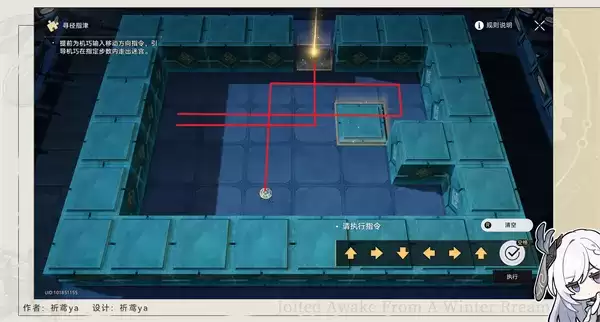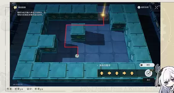 1、我们来到绥园中部,与棋鬼对话,即可开启解密,第一关答案:上,左,上