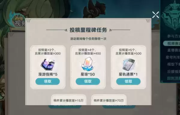 2、玩家可以在发视频和直播都是可以白嫖到大量的星穹。