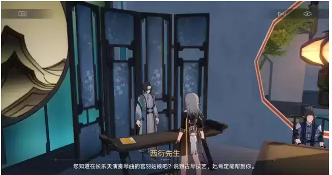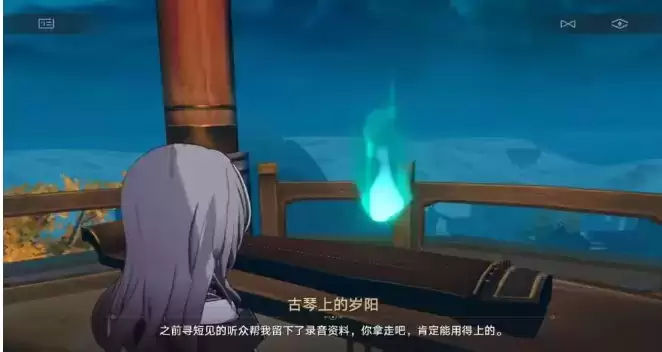 1、在下图位置可以找到一个古琴,点击调查,全部选择继续听下去。