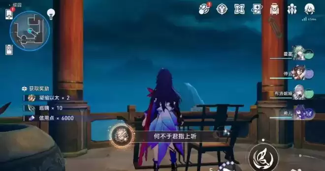 3、(可选)前往星槎海中枢找到西衍先生或者其它与音乐相关npc.他们会告诉你前往长乐天找到宫羽。也可以直接去找宫羽,她在长乐天下图所示位置。