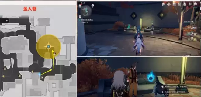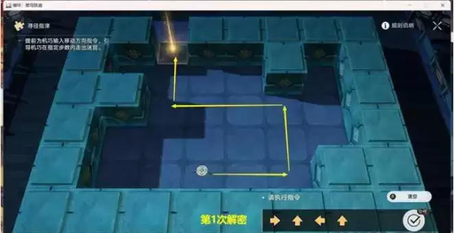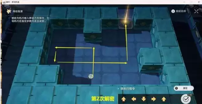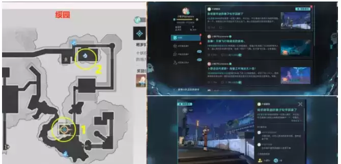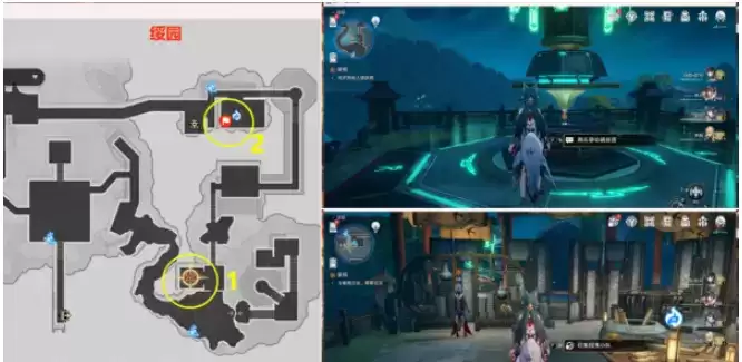 (5)接下来先根据任务指示,进入到前面的迷宫里面,在下图1和2位置站立一下,然后出来后,继续和符玄对话,第3次解密执行指令如下图。