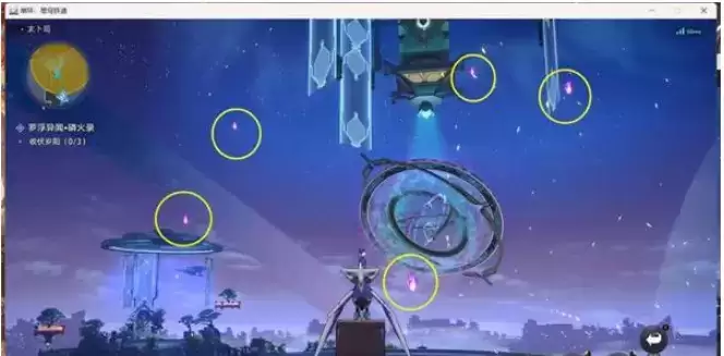 (8)收集到3个岁阳后,下图位置会出现一个蓝色的岁阳,这个蓝色的岁阳会逃跑,我们只需根据任务指示,追上后收集即可。