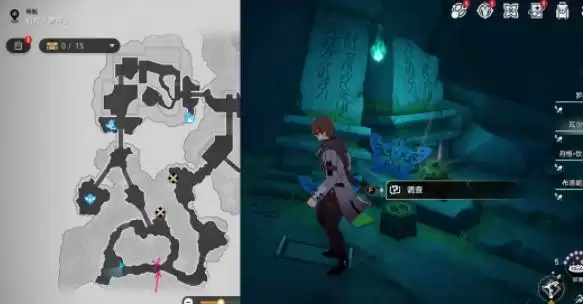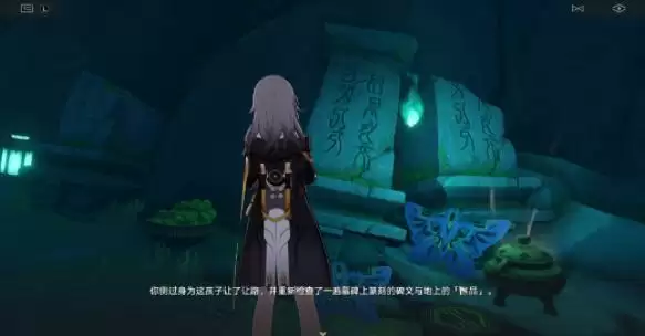 1、首先玩家需要来到这个墓碑这里就可以选择调查。