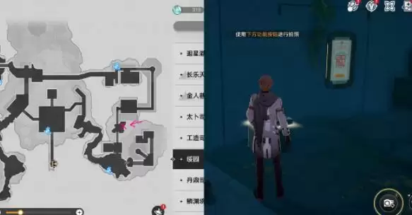 1、触发位置如图所示,靠近后技能栏会出现一个拍照按钮,点击拍照钮让其完成扫描。