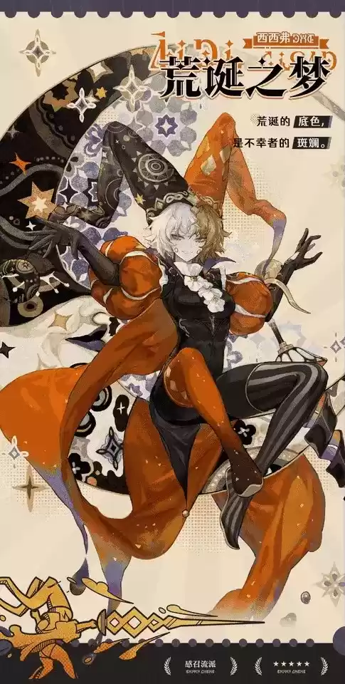 荒诞之梦西西佛的形象设计充满了想象力和创意。他的外貌充满了小丑的元素,色彩鲜艳且夸张。他身穿一身花哨的服装,头戴小丑帽子,脸上画着夸张的妆容。整体服饰配色方面,在经典的红黑白配色基础上运用了大量金色的纹样进行装饰,这些丰富的色彩是“喜”,而最终五彩斑斓的黑是“悲”,充满混沌与迷离感,这也让这一角色极为吸引人。这种极具冲击力的形象给人一种欢乐和愉悦的感觉,但又不乏一些神秘和诡谲感,很符合小丑这一角色设定。