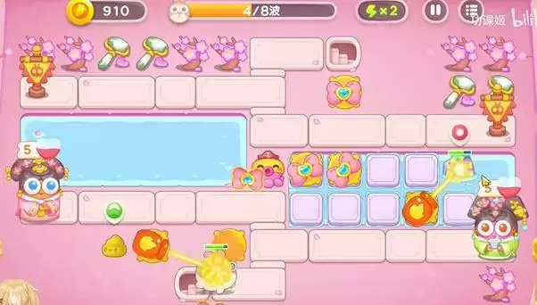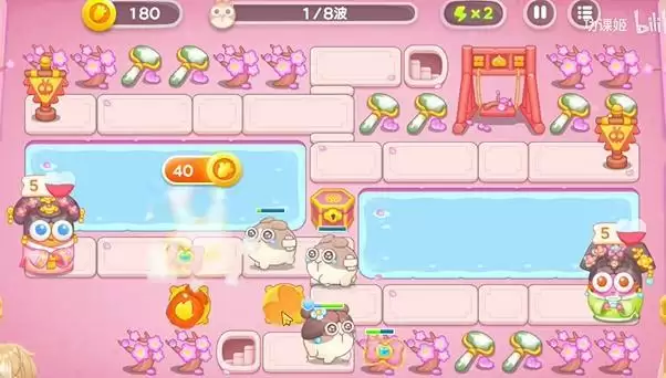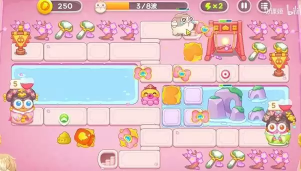 3、河道两边都会放上蝴蝶结会比较好,后面还会飞行怪物,所以需要提前预留空位。