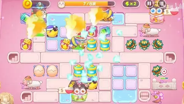 2、放上鸡蛋和电极塔,用来清理周围的道具,优先升级电极,然后升级鸡蛋。