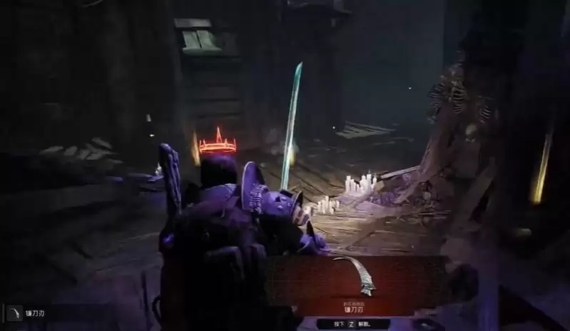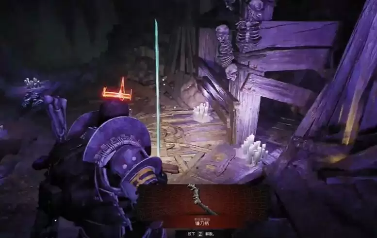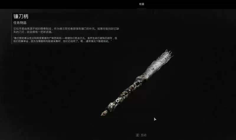 2、接着我们检查镰刀柄,发现可以按e进行互动。