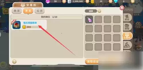 这样就可以出售不需要的材料或者物品了。