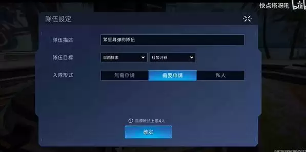 2、然后需要组队,玩家可以创建一个队伍就可以了。队伍就按照图二的设置。