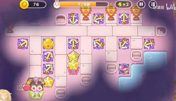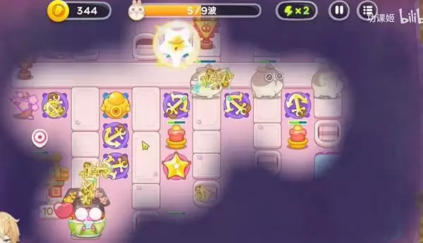 3、可以放上几个星星塔来攻击飞行兔子。