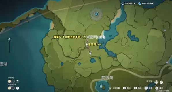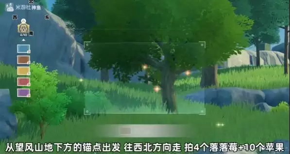 2、从锚点向西北方向走就可以找到4个落落果和10个苹果。