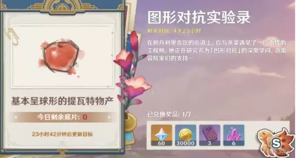 1、小活动第2天的目标是找『基本呈球状的提瓦特物产』,这个种模样的有很多,推荐选「落落莓」+「苹果」因为它们是成堆出现的。