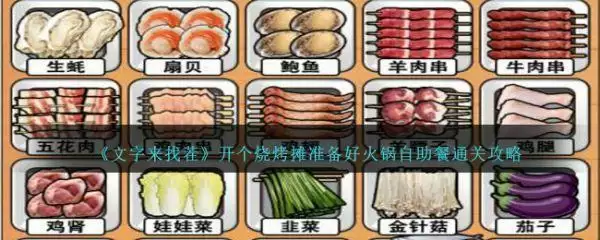 《文字来找茬》开个烧烤摊准备好火锅自助餐通关攻略