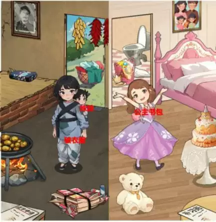 1、这一关我们需要拖动下面的物品到上面两个女孩家,一个是农村,一个是城市