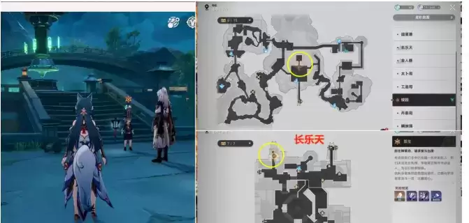 1、先来到【绥园】下图位置和【浮烟】对话,之后再去【长乐天】神策府找【景元】对话,最后再回【绥园】和【浮烟】对完话后,打一波怪(打的时候按照系统提示打就行)
