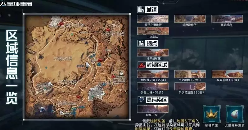 1、高污染区:异晶山谷,需要佩戴过滤头盔,里面的资源还是非常丰富的。