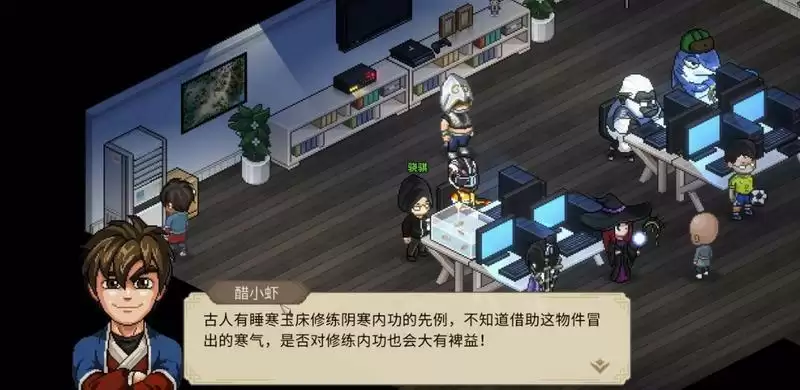 3、左边可以看到一个冰柜,需要我们对着进行修炼。