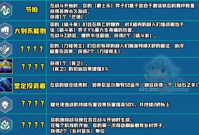 如果登场了两个相同的棋子会获得最大生命值、攻速、暴击加成。