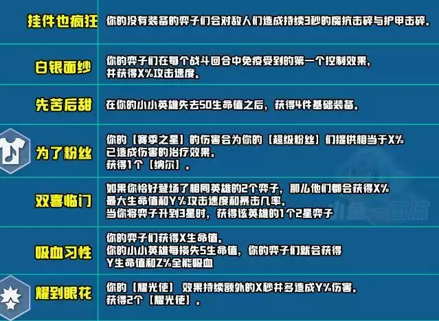 赛季之星有一个相同羁绊会的生命值和攻速加成。