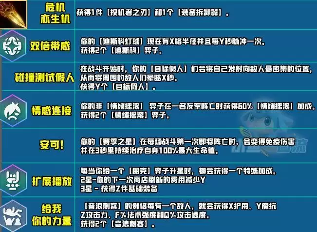 非情绪摇滚棋子在右方阵亡后获得60%加成。
