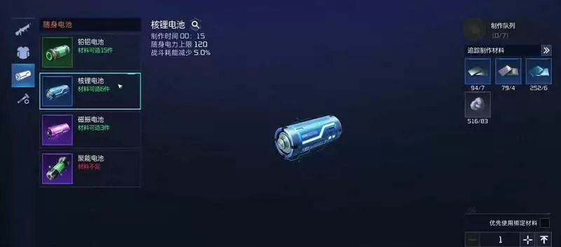3、30级后,我们进入装备制造台,进行电池的制作,这样就能够轻松的获取到许多电力了。