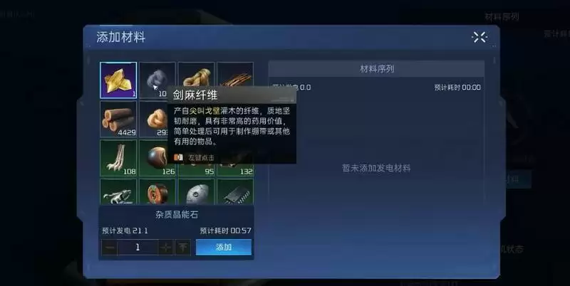 1、在游戏中,如果我们的发电机没有电了,可以通过添加材料来获取电力。