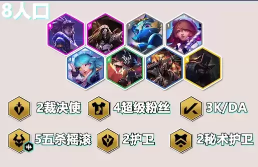 5、裁决使阵容对装备的需求很高,否则没有上限,另外八人口才能出四费天选。
