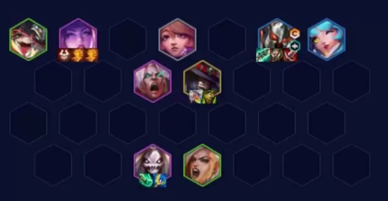 4、这个阵容的成型难度比较高,前期可以用天选纳尔过渡,建议在4-1升7找天选铁男,在阵容成型之后强度很高。站位可以根据对面的阵容来改变即可。