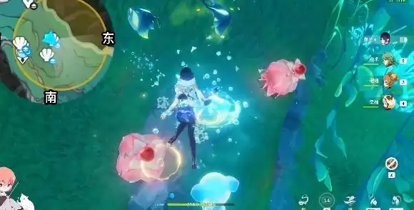 3、然后就可以看到发光的鱼。过去抓住它们。