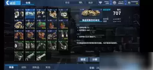 仓库里面的装备都是我们从战斗训练中获取的,一部分装备因为档次太低无法使用,这时候可以把它进行分解。