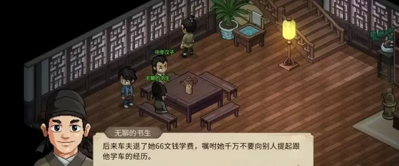 2、然后玩家需要和无聊的书生聊天,然后就可以获取到石姓奇女子的传闻。