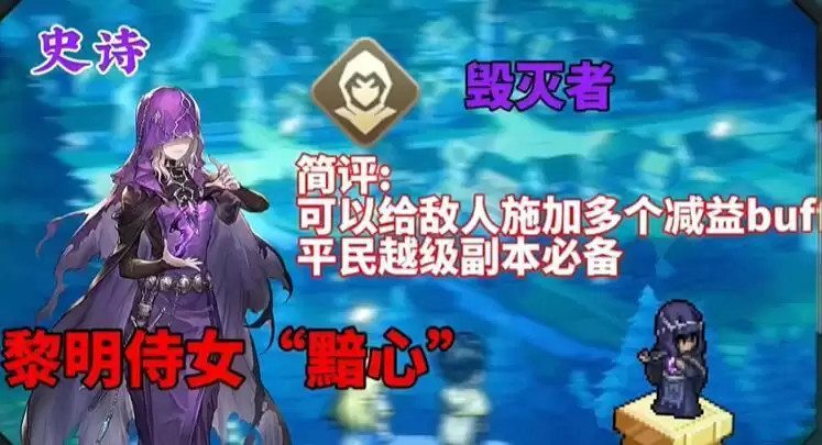 解析:黯心是史诗稀有度中的神卡,史诗最强辅助,能够给多个敌人施加减益buff,是很多阵容的核心。