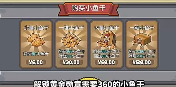 2、黄金勋章是需要花费小鱼干解锁的,也就是氪金购买。普通黄金勋章售价360小鱼干,豪华版售价720小鱼干解锁,豪华版可以额外获得一些等级。